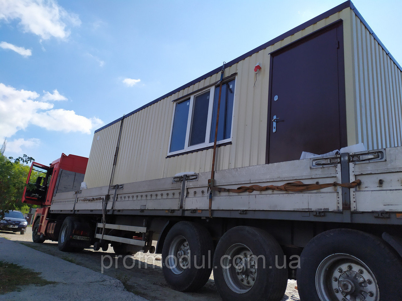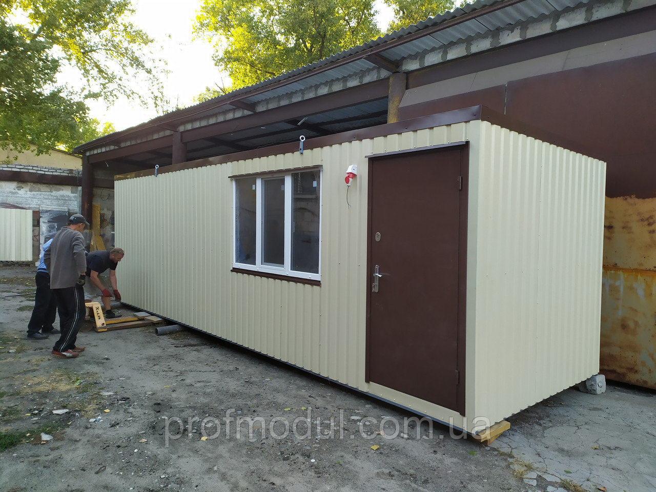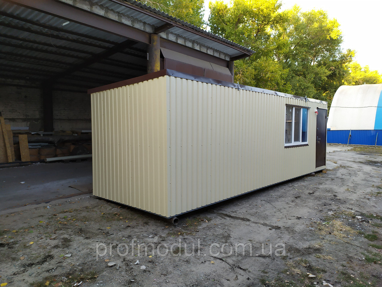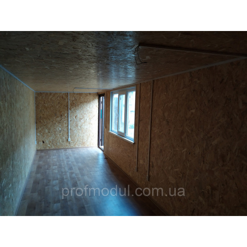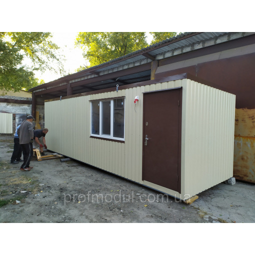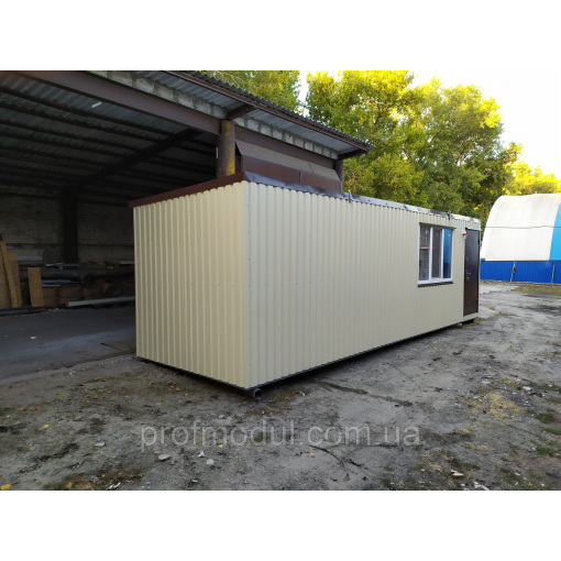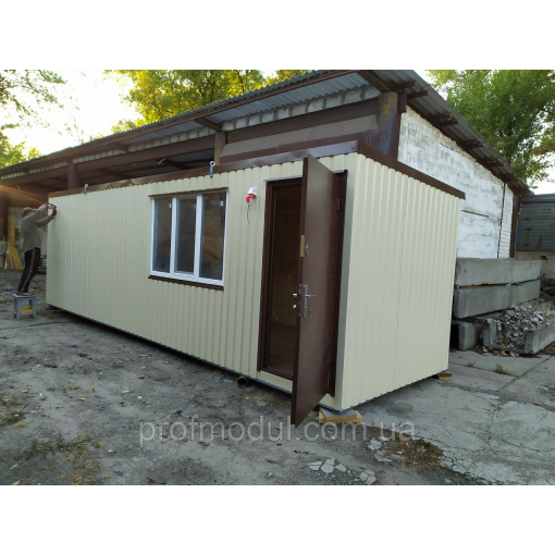 Новый блок-контейнер 8*2,4 метра. Полностью металлический каркас из швеллера 100*50 мм, без деревянных элементов. Утепление по всему корпусу конструкции 100 мм пенополистирол, гидро-барьер. обеспечиваем доставку и установку по Украине. А также предлагаем изготовление модульных помещений различного типа назначения: бытовки, блок-контейнеры, посты охраны. мини-офисы, прорабские, модульные быстро возводимые дома. Все наши изделия выполнены по ДСТУ Б В.2.2-22:2008 на основании прочного каркаса из швеллера 100*50*2 мм обработан антикоррозийным грунтом, благодаря этому наши изделия отличаются повышенной износостойкостью и имеют расчетный срок эксплуатации не менее 20 лет, транспортируются без нарушений геометрии каркаса. На каждое изделие гарантия 24 месяца, предоставляется паспорт и документ собственности. Комплектация блок-контейнера имеющего габаритные размеры 8*2.4 метра (19.2 m2), высота 2.4 метра: - Наружная обшивка профилированный лист ПС-20 оцинкованный цветной (толщина 0,45 мм). - Внутренняя отделка стен и потолка плита OSB 10 мм, - Пол влагостойкая плита ОСБ 18 мм, бытовой линолеум, плинтус. - Кровля односкатная оцинкованный лист ПК-40 - Дно подшито листовым оцинкованным металлом 0,5 мм - Утепление стен, пола и кровли 100 мм пенополистирол. - Изоляция – гидро-барьер по всему корпусу конструкции. - Окно –ПВХ однокамерный стекло-пакет, поворотно-откидное – 1 шт - Входная дверь металлическая (металл 1.5 мм., пр-во Украина, утепленная, имеет врезной замок с комплектом ключей. - Наружный штепсель подключения электропитания 2-х фазный, внутренний щиток с автоматическими выключателями, электропроводка скрытая в кабельканале, электроприборы в комплектации: розетки, включатели, LED-светильники Срок изготовления бытовки 8*2,4 метра 14 календарных дней. Условия оплаты: предоплата 80% от стоимости Наш адрес: г.Днипро ул.Космонавта Волкова 6д Дараган Роман Юрьевич - директор Больше информации на нашем сайте: profmodul.com.ua Будем рады сотрудничеству!