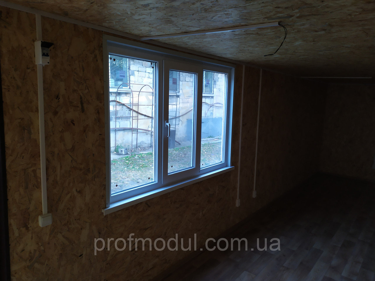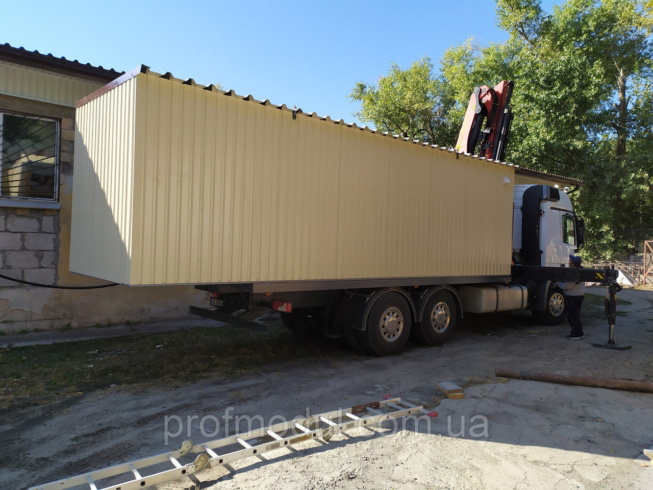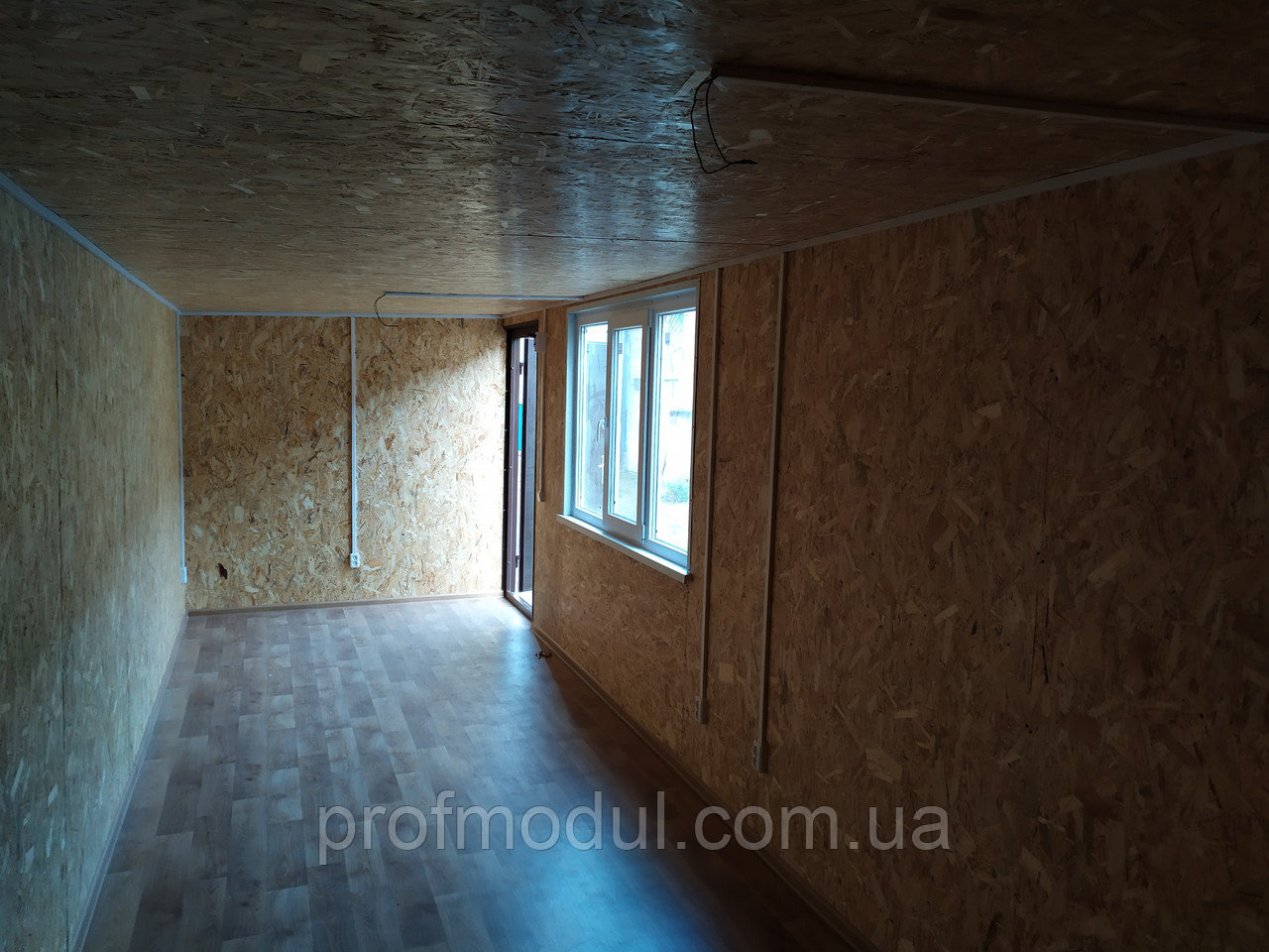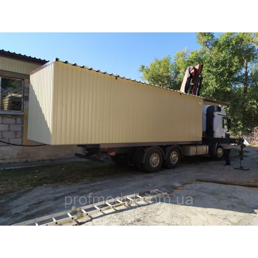 Новый блок-контейнер 8*2,4 метра. Полностью металлический каркас из швеллера 100*50 мм, без деревянных элементов. Утепление по всему корпусу конструкции 100 мм пенополистирол, гидро-барьер. обеспечиваем доставку и установку по Украине. А также предлагаем изготовление модульных помещений различного типа назначения: бытовки, блок-контейнеры, посты охраны. мини-офисы, прорабские, модульные быстро возводимые дома. Все наши изделия выполнены по ДСТУ Б В.2.2-22:2008 на основании прочного каркаса из швеллера 100*50*2 мм обработан антикоррозийным грунтом, благодаря этому наши изделия отличаются повышенной износостойкостью и имеют расчетный срок эксплуатации не менее 20 лет, транспортируются без нарушений геометрии каркаса. На каждое изделие гарантия 24 месяца, предоставляется паспорт и документ собственности. Комплектация блок-контейнера имеющего габаритные размеры 8*2.4 метра (19.2 m2), высота 2.4 метра: - Наружная обшивка профилированный лист ПС-20 оцинкованный цветной (толщина 0,45 мм). - Внутренняя отделка стен и потолка плита OSB 10 мм, - Пол влагостойкая плита ОСБ 18 мм, бытовой линолеум, плинтус. - Кровля односкатная оцинкованный лист ПК-40 - Дно подшито листовым оцинкованным металлом 0,5 мм - Утепление стен, пола и кровли 100 мм пенополистирол. - Изоляция – гидро-барьер по всему корпусу конструкции. - Окно –ПВХ однокамерный стекло-пакет, поворотно-откидное – 1 шт - Входная дверь металлическая (металл 1.5 мм., пр-во Украина, утепленная, имеет врезной замок с комплектом ключей. - Наружный штепсель подключения электропитания 2-х фазный, внутренний щиток с автоматическими выключателями, электропроводка скрытая в кабельканале, электроприборы в комплектации: розетки, включатели, LED-светильники Срок изготовления бытовки 8*2,4 метра 14 календарных дней. Условия оплаты: предоплата 80% от стоимости Наш адрес: г.Днипро ул.Космонавта Волкова 6д Дараган Роман Юрьевич - директор Больше информации на нашем сайте: profmodul.com.ua Будем рады сотрудничеству!