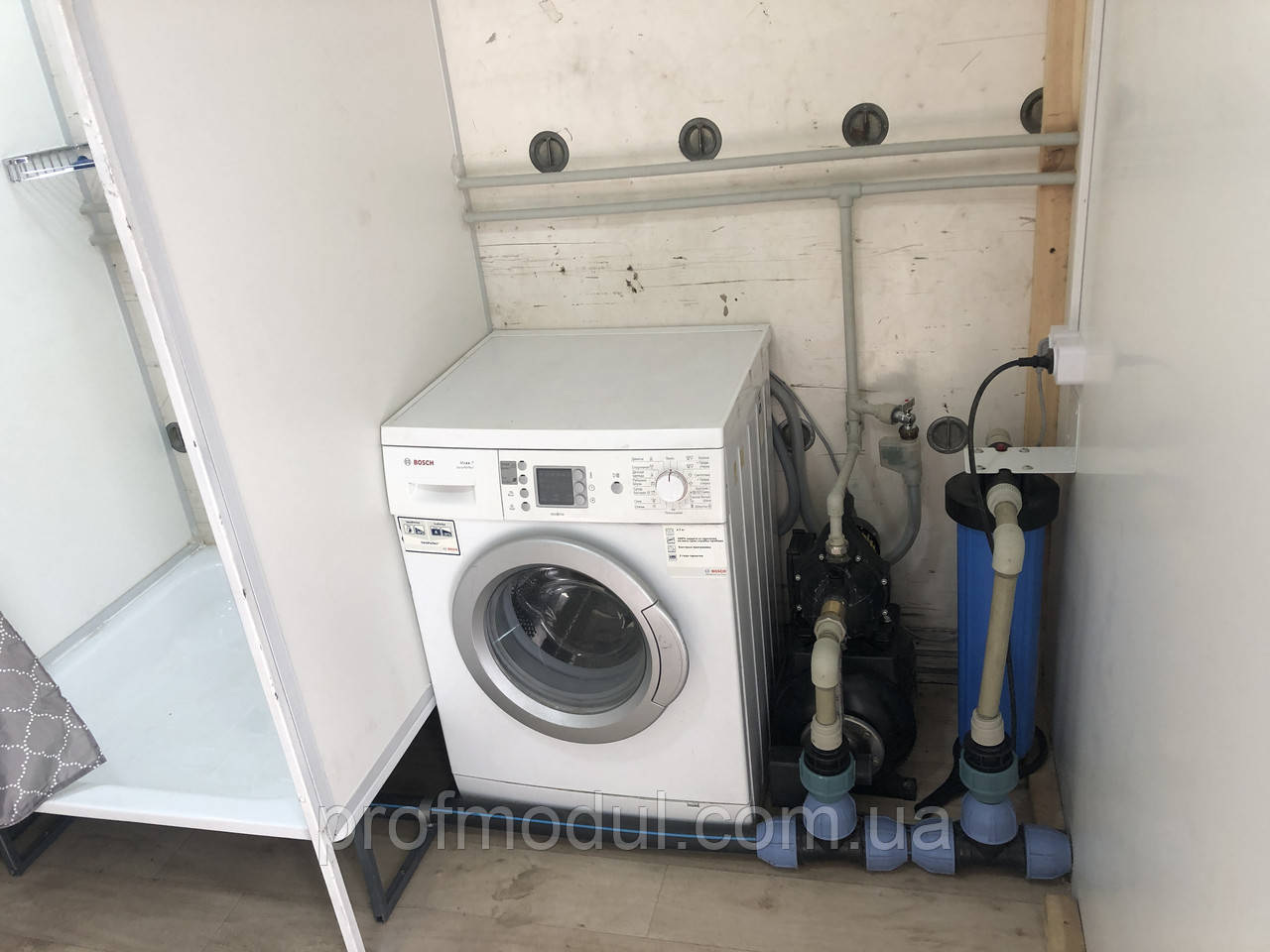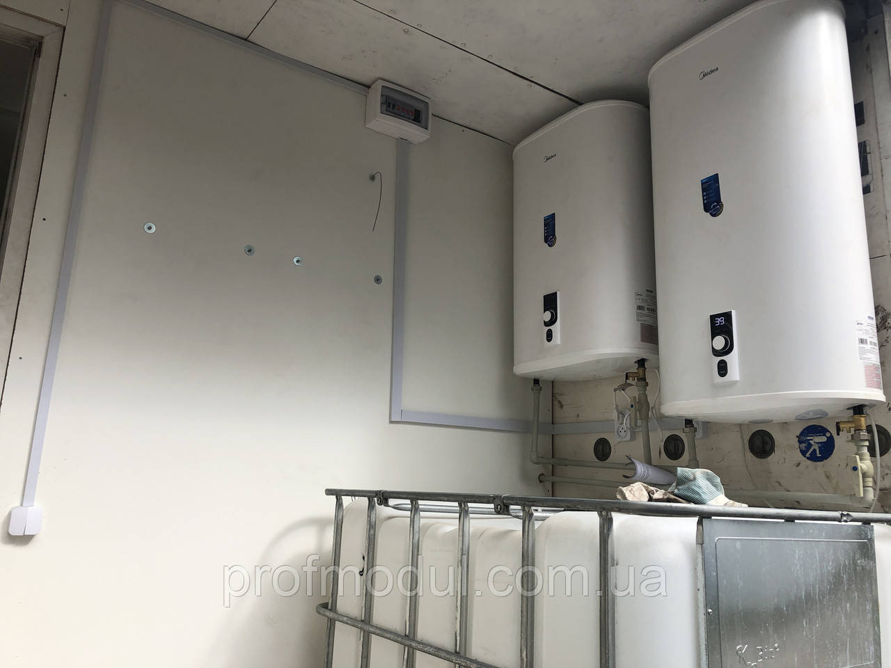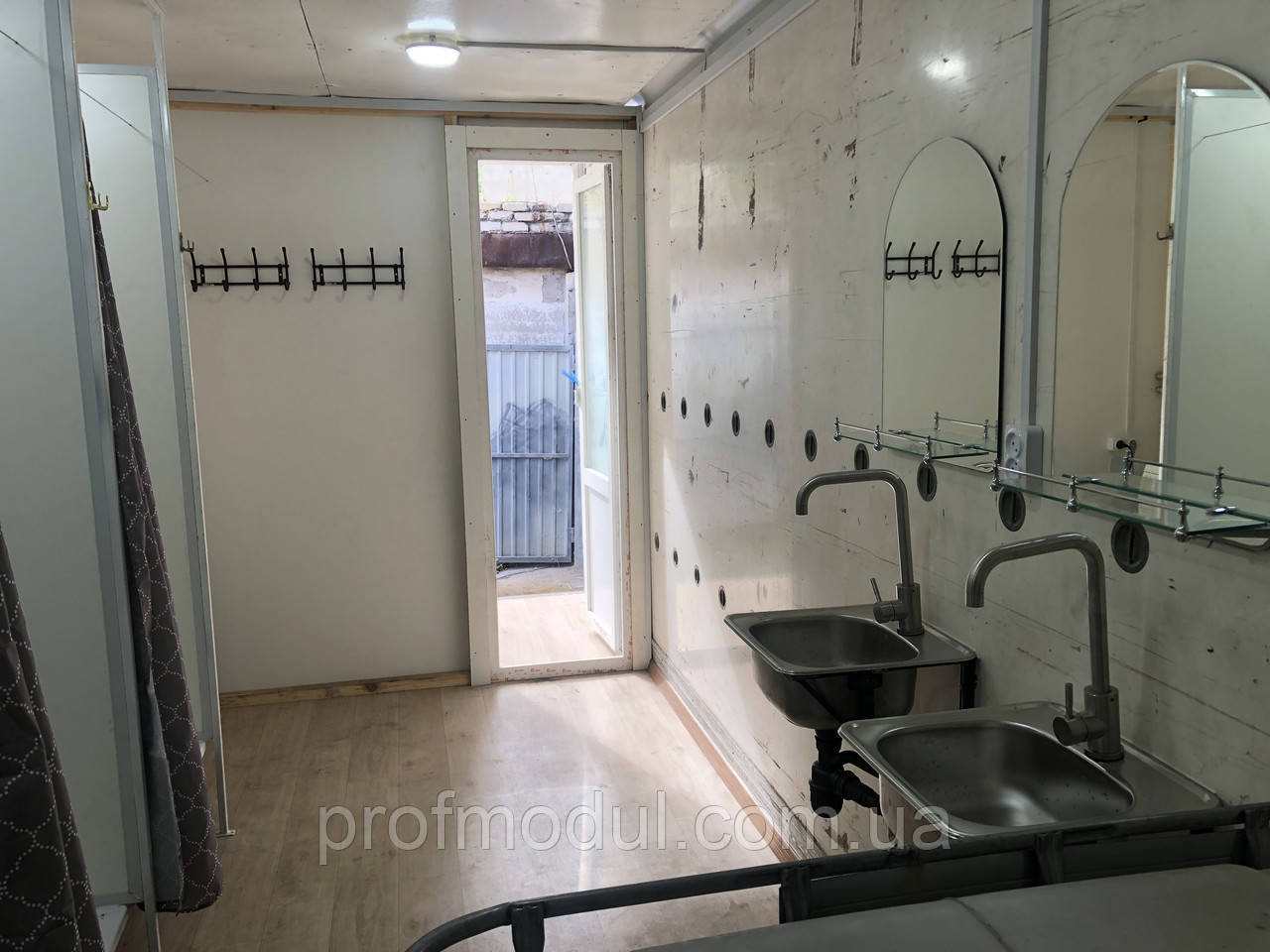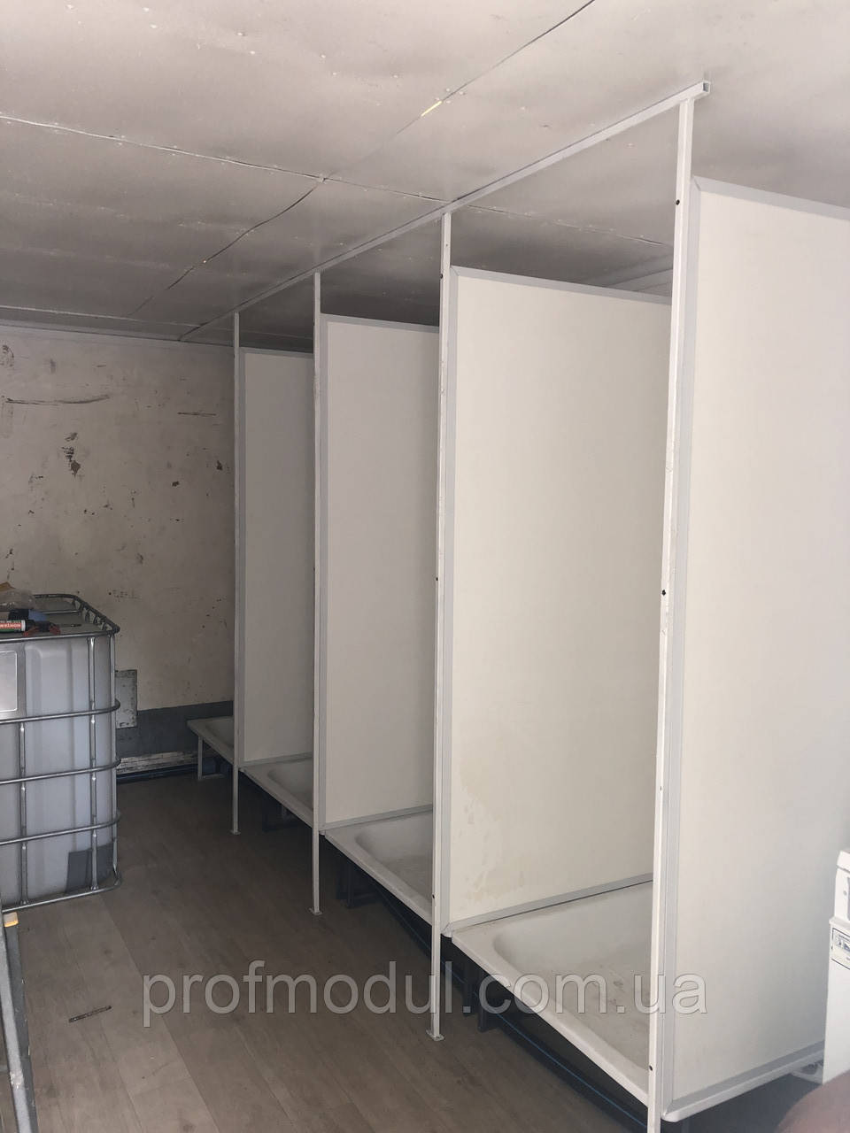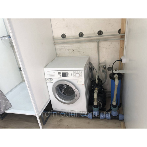 Мобільна душова або автодуш створена по власному проекту замовника і призначена для використання в польових умовах. Повністю автономна душова має розміри 6*2,4*2,3 м, має дизельний генератор для постійної напруги 220В, та насосну станцію для тиску у водопровідній системі. Встановлені: два єврокуба по 1000л кожний,які з'єднані між собою, два бойлера на 80 і 100л, чотири душові кабінки зі змішувачами і лійками, два умивальники зі змішувачами та дзеркалами. В кожній кабінці окреме світло.