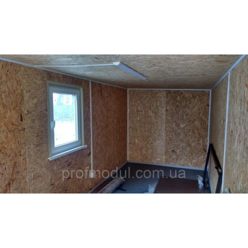 - Внутренняя отделка стен и потолка плита OSB 10 мм, - Пол влагостойкая плита ОСБ 18 мм, бытовой линолеум, плинтус.
