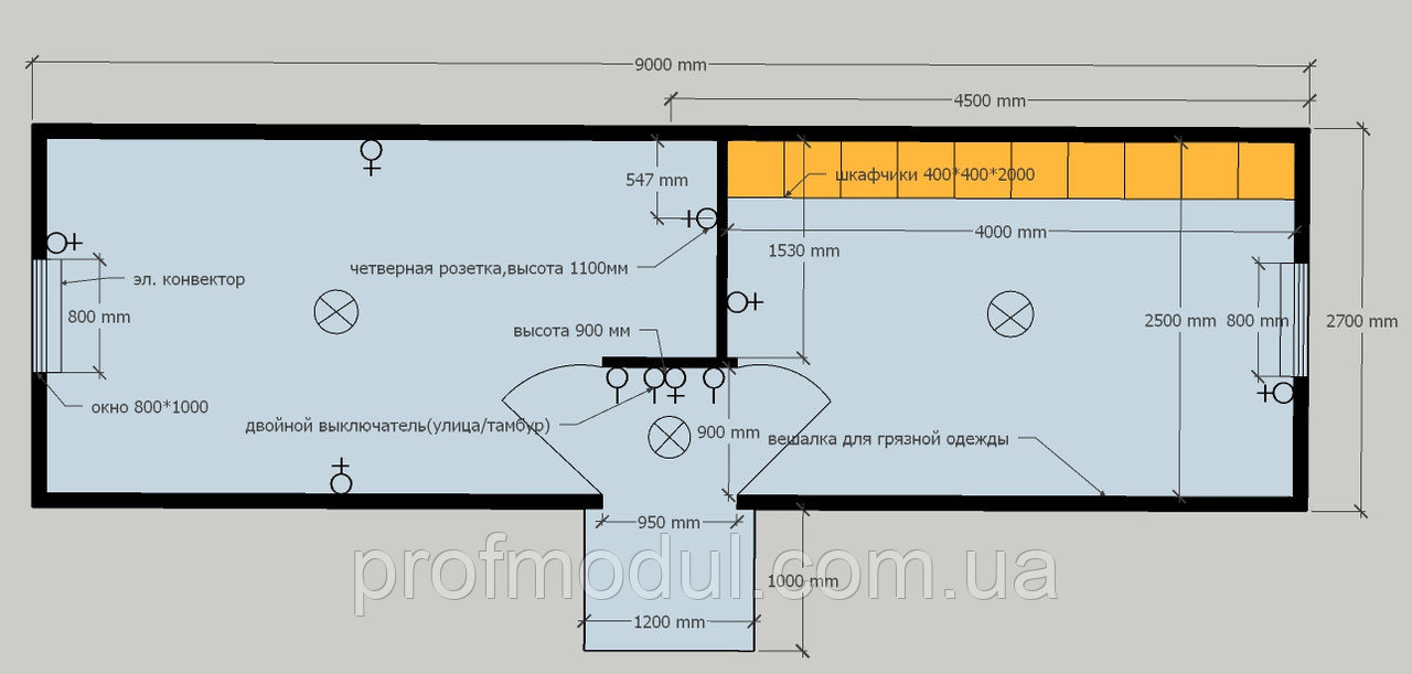Детальні характеристики Побутівка для робітників 9х2,7х2,7 м.