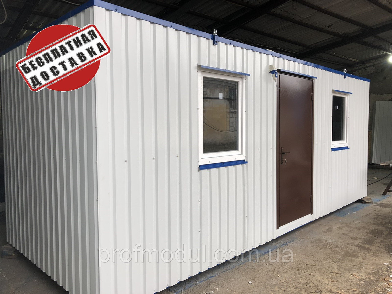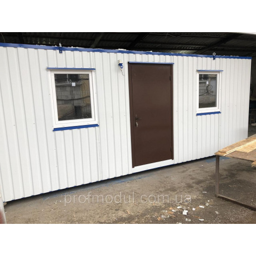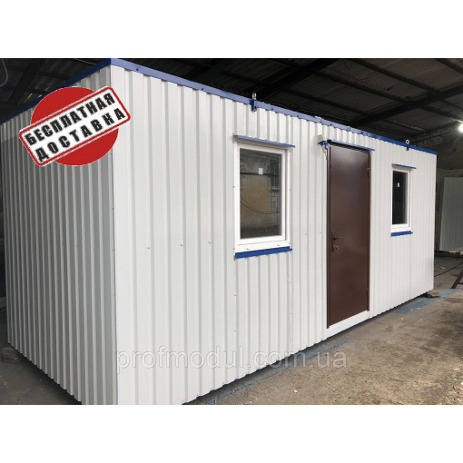 Бытовка "Стандарт" 6000*2400 для строительной площадки. Каркаса выполнен из швеллера 100*50*2 мм обработан антикоррозийным грунтом, благодаря этому наши изделия отличаются повышенной износостойкостью и имеют расчетный срок эксплуатации не менее 20 лет, транспортируются без нарушений геометрии каркаса. На каждое изделие гарантия 24 месяца, предоставляется паспорт и документ собственности. Комплектация и размеры 6000*2400 мм, высота 2400 мм: - Наружная обшивка профилированный лист П-20 профлист цветной RAL - Внутренняя отделка стен и потолка – плита OSB 10 мм. - Пол – дно подшито листовым оцинкованным листом 0,5 мм, утеплитель 100 мм пенополистирол, влагостойкая плита OSB 18 мм, бытовой линолеум, плинтус. - Кровля односкатная оцинкованный профнастил ПК-44 - Утепление пола, стен и кровли 100 мм пенополистирол, - Изоляция – паро и гидробарьер по всему корпусу конструкции. - Входная дверь металлическая 2000*950 мм (металл 1.5 мм., пр-во Украина, утепленная, имеет врезной замок с комплектом ключей – 1 шт. - Окно – поворотное 1000*1200 мм - 2 шт. - Электропроводка: наружный штепсель подключения 2-х фазный кабель 2*2,5 мм, внутренний короб с 2-мя автоматами 16А, розетка двойная -4 шт., выключатель двойной – 1 шт, LED светильник 36 Вт. – 2шт, проводка спрятана в кабель-канале. Cрок изготовления блок-контейнера 6000*2400 метра 14 календарных дней.