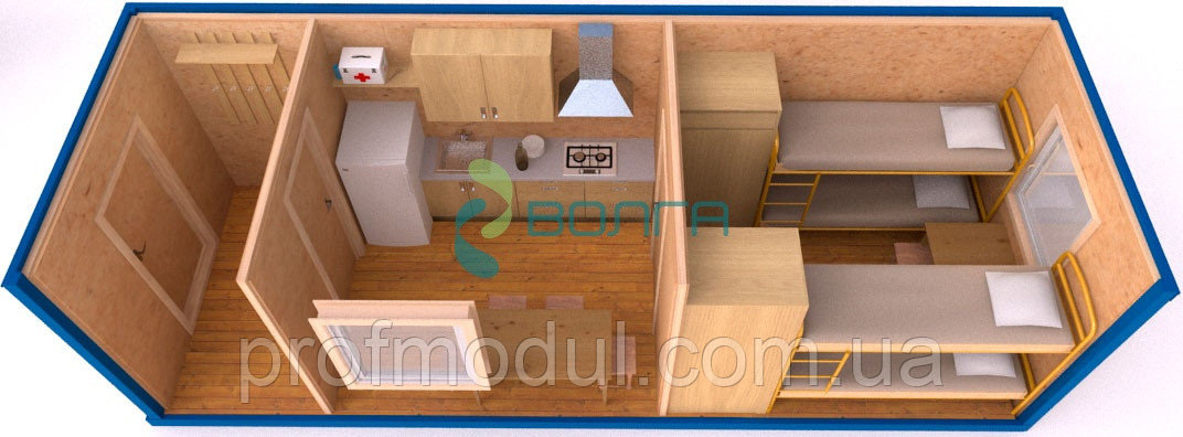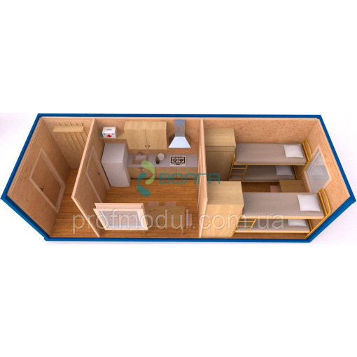 Жилой модуль предназначен для круглогодичного проживания одного и более человек, и может использоваться как временное или постоянное жилье.