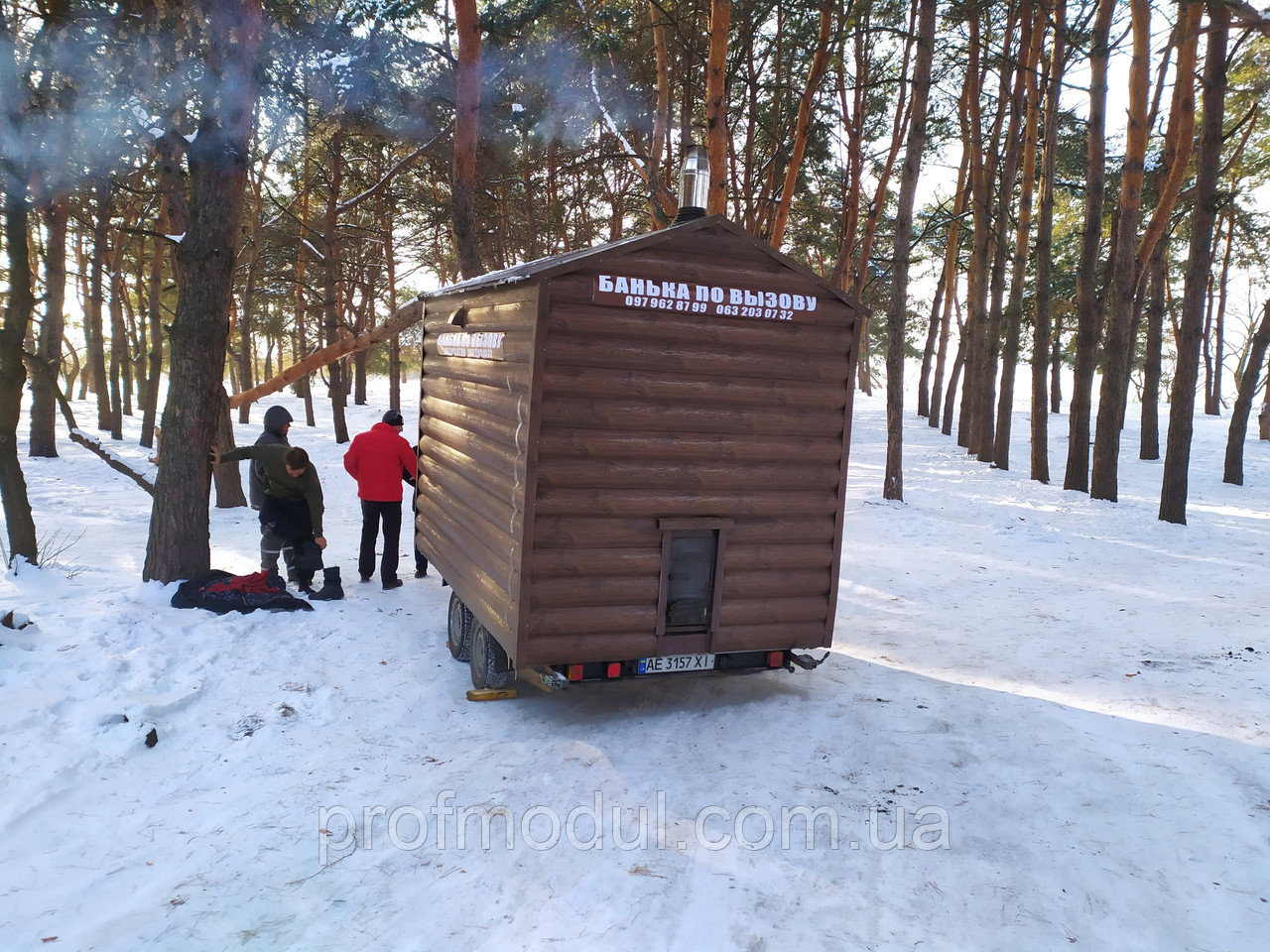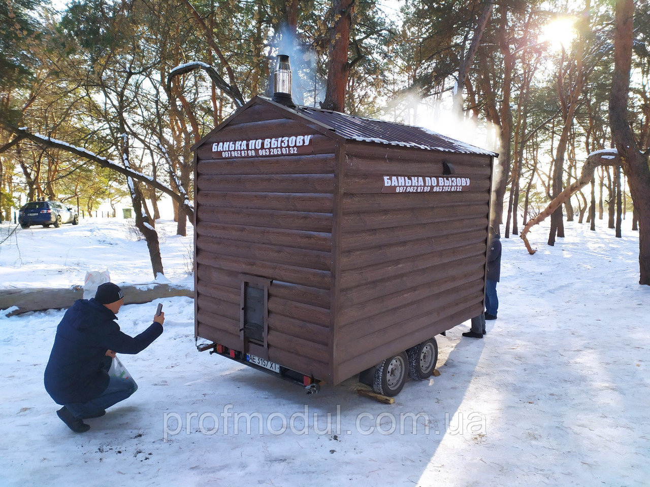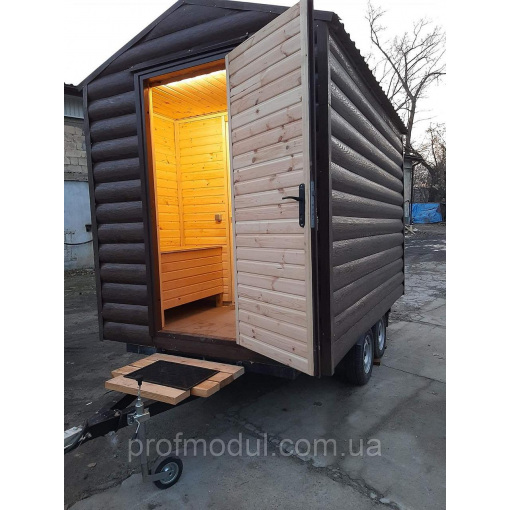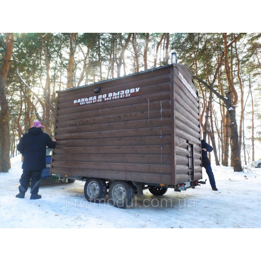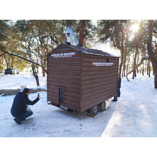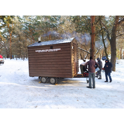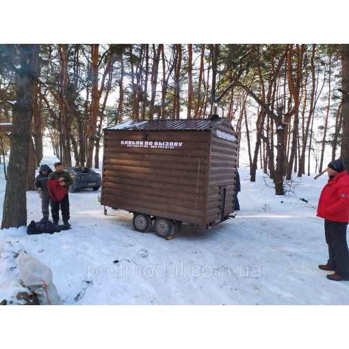 Модульная банька на шасси - уникальный в своем роде проект, который подойдет как для бизнеса так и для личного использования. Габаритные размеры 3200*2000 мм. Преимущество такой баньки в том, что вы можете выбрать любое место для отдыха на природе, возле водоема или в лесу и получить незабываемое удовольствие от парения. В баньке имеется душ с холодной водой, бак с горячей водой расположенный на печке, также есть место для переодевания. Банька изготовлена на основе металлического швеллера 50*50 мм, утеплена базальтовой ватой толщиной 50 мм. Внутренняя отделка стен в парной липовая вагонка, в предбаннике сосновая вагонка. Утепление пола 100 мм, уложена керамическая плитка. Наружная обшивка OSB плита 10 мм, сверху металлический сайдинг "блок-хаус" Двери в парную стеклянные .700*2000 мм, входная дверь металлическая утепленная обшита вагонкой. В подкровельном пространстве установлен бак под холодную воду на 100 литров, также установлен бак на печку под гарячую воду. Освещение светодиодное обеспечивается аккумулятором 12 V Установлены вытяжные клапана, подача воздуха выполнена под печкой. Также установлены сливные трапы в парной и душевой. Банька установлена на двухосный лафет.