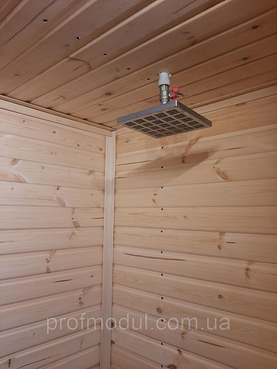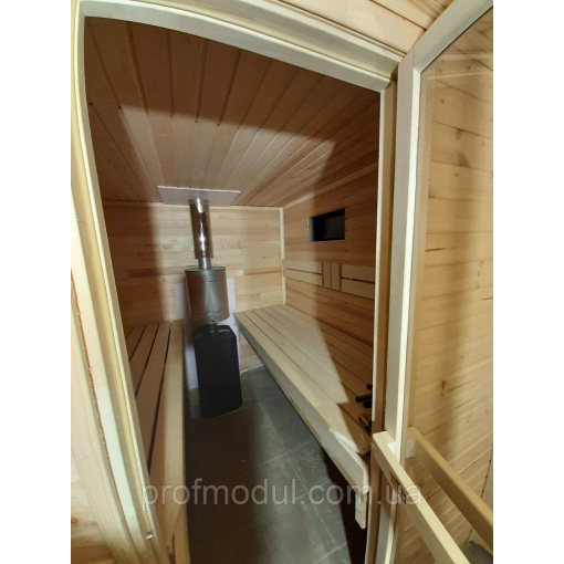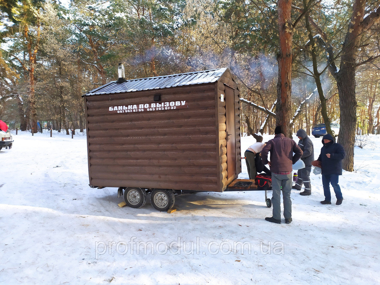 Модульная банька на шасси - уникальный в своем роде проект, который подойдет как для бизнеса так и для личного использования. Габаритные размеры 3200*2000 мм. Преимущество такой баньки в том, что вы можете выбрать любое место для отдыха на природе, возле водоема или в лесу и получить незабываемое удовольствие от парения. В баньке имеется душ с холодной водой, бак с горячей водой расположенный на печке, также есть место для переодевания. Банька изготовлена на основе металлического швеллера 50*50 мм, утеплена базальтовой ватой толщиной 50 мм. Внутренняя отделка стен в парной липовая вагонка, в предбаннике сосновая вагонка. Утепление пола 100 мм, уложена керамическая плитка. Наружная обшивка OSB плита 10 мм, сверху металлический сайдинг "блок-хаус" Двери в парную стеклянные .700*2000 мм, входная дверь металлическая утепленная обшита вагонкой. В подкровельном пространстве установлен бак под холодную воду на 100 литров, также установлен бак на печку под гарячую воду. Освещение светодиодное обеспечивается аккумулятором 12 V Установлены вытяжные клапана, подача воздуха выполнена под печкой. Также установлены сливные трапы в парной и душевой. Банька установлена на двухосный лафет.