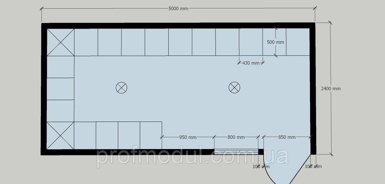 Детальні характеристики Модульна роздягальня 5х2,4 м.