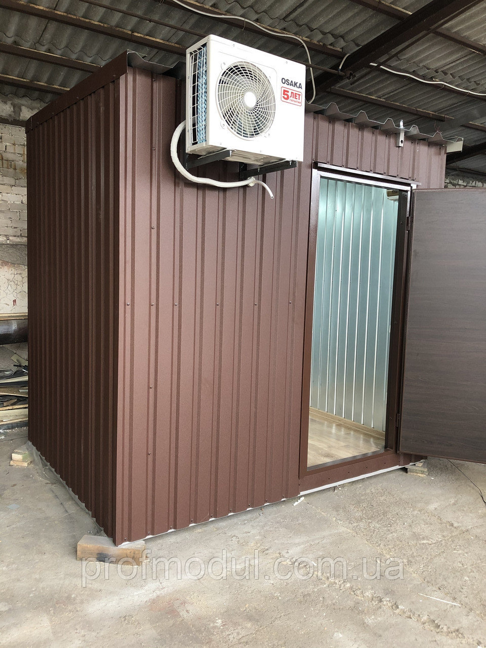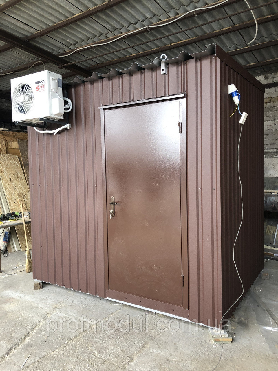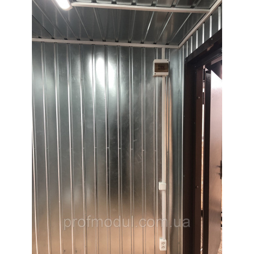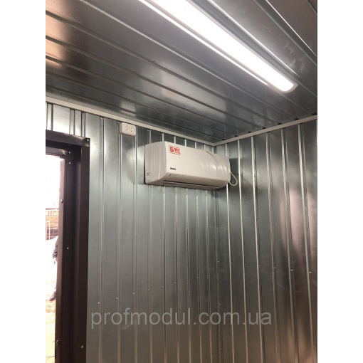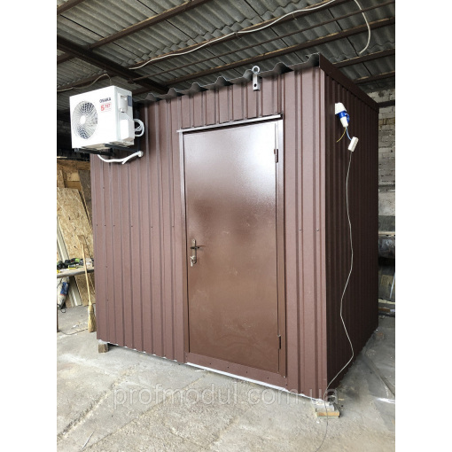 Модульная серверная изготовлена для размещения в ней серверов в удалённом месте. Габаритные размеры 2600*2000 мм, высота 2600 мм: - Наружная обшивка профилированный лист П-20 профлист цветной RAL - Внутренняя отделка стен и потолка – профлист оцинкованный. - Пол – усиленный каркас, дно подшито листовым оцинкованным листом 0,5 мм,установлена гильза под высоковольтное электроснабжение! утеплитель 100 мм базальтовая вата, влагостойкая плита OSB 22 мм, бытовой линолеум, плинтус. - Кровля односкатная оцинкованный профнастил ПК-44 - Утепление пола, стен и кровли 100 мм базальтовая вата, - Изоляция – паро и гидробарьер по всему корпусу конструкции. - Входная дверь металлическая 2000*950 мм (металл 1.5 мм., пр-во Украина, утепленная, имеет врезной замок с комплектом ключей – 1 шт. - Электропроводка: наружный штепсель подключения 2-х фазный кабель 2*2,5 мм, внутренний короб с 2-мя автоматами 16А, розетка двойная -2 шт., выключатель двойной – 1 шт, LED светильник 36 Вт. – 1шт, проводка спрятана в кабель-канале. - Кондиционер- сплит «зима-лето» 9-ка. – 1 шт.