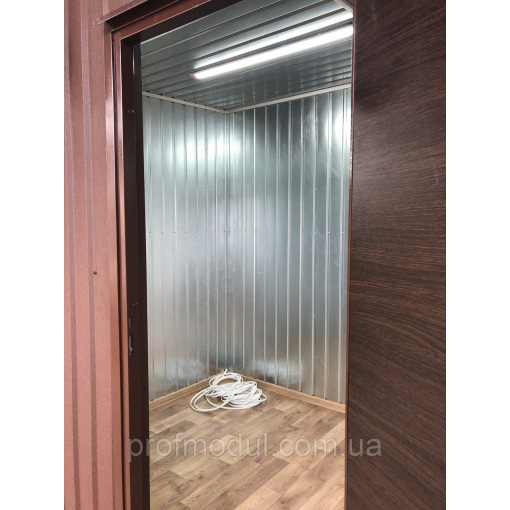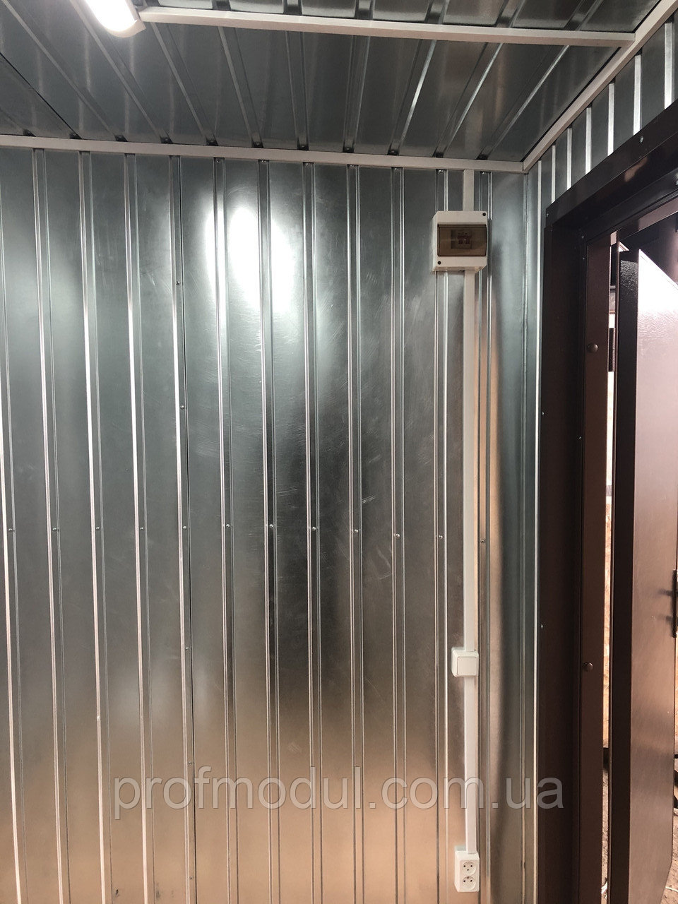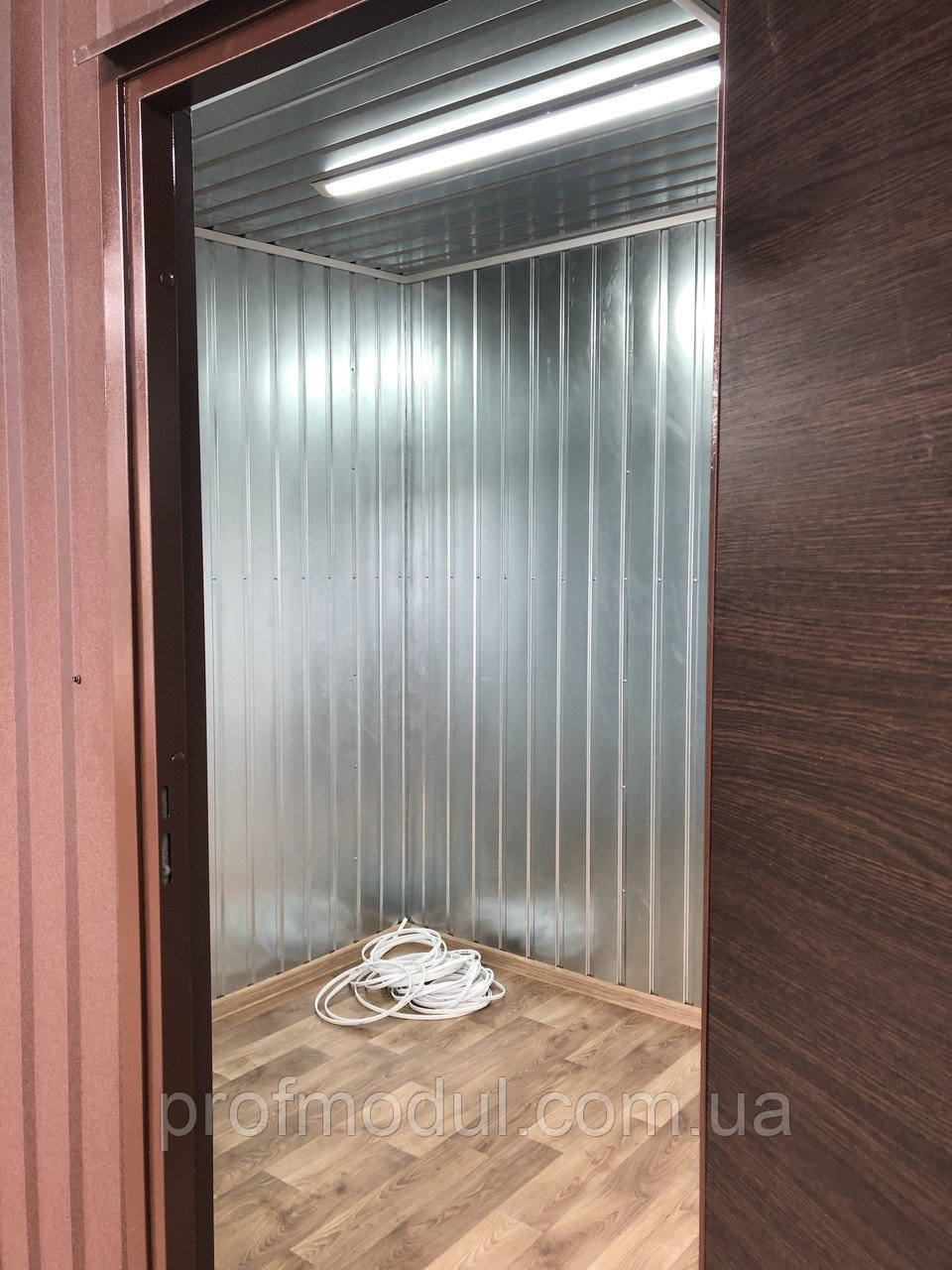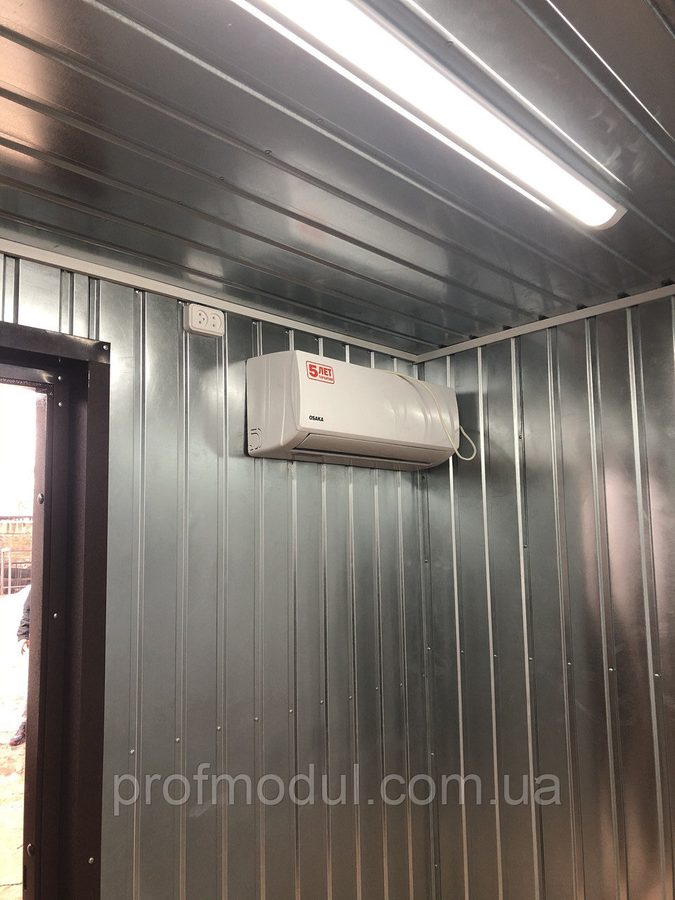 Модульная серверная изготовлена для размещения в ней серверов в удалённом месте. Габаритные размеры 2600*2000 мм, высота 2600 мм: - Наружная обшивка профилированный лист П-20 профлист цветной RAL - Внутренняя отделка стен и потолка – профлист оцинкованный. - Пол – усиленный каркас, дно подшито листовым оцинкованным листом 0,5 мм,установлена гильза под высоковольтное электроснабжение! утеплитель 100 мм базальтовая вата, влагостойкая плита OSB 22 мм, бытовой линолеум, плинтус. - Кровля односкатная оцинкованный профнастил ПК-44 - Утепление пола, стен и кровли 100 мм базальтовая вата, - Изоляция – паро и гидробарьер по всему корпусу конструкции. - Входная дверь металлическая 2000*950 мм (металл 1.5 мм., пр-во Украина, утепленная, имеет врезной замок с комплектом ключей – 1 шт. - Электропроводка: наружный штепсель подключения 2-х фазный кабель 2*2,5 мм, внутренний короб с 2-мя автоматами 16А, розетка двойная -2 шт., выключатель двойной – 1 шт, LED светильник 36 Вт. – 1шт, проводка спрятана в кабель-канале. - Кондиционер- сплит «зима-лето» 9-ка. – 1 шт.