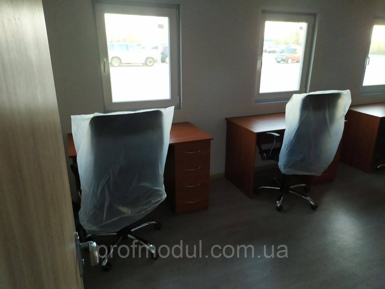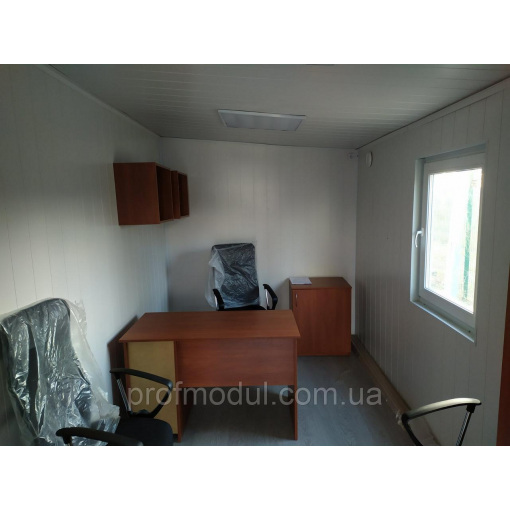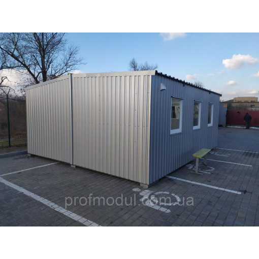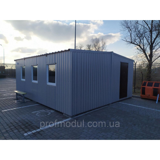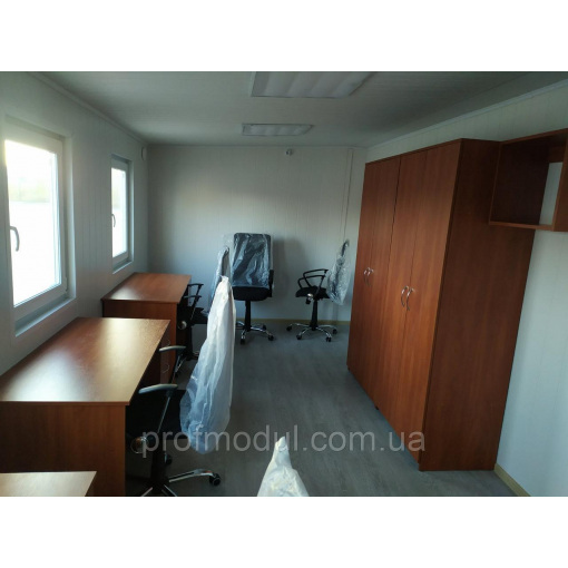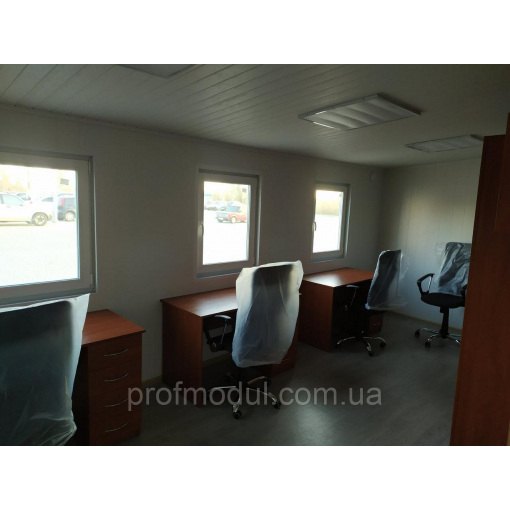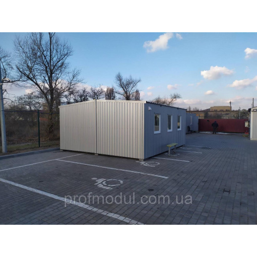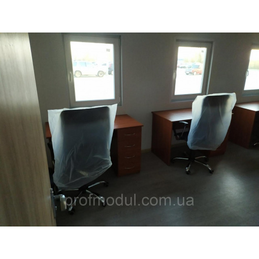 Модульные здания такого типа используются для размещения персонала на различных площадках (строительные, автомобильные, штрафплощадки, производственные), без капитального строительства, например когда оно запрещено или когда времени на строительство нет. Мобильный офис состоит из двух модулей скреплённых между собой и образует здание общей площадью 30 м/ кв. При входе в здание сразу попадаете в небольшой тамбур с которого уже можно зайти в два отдельных кабинета.