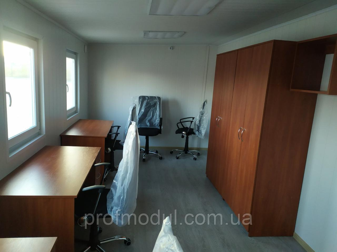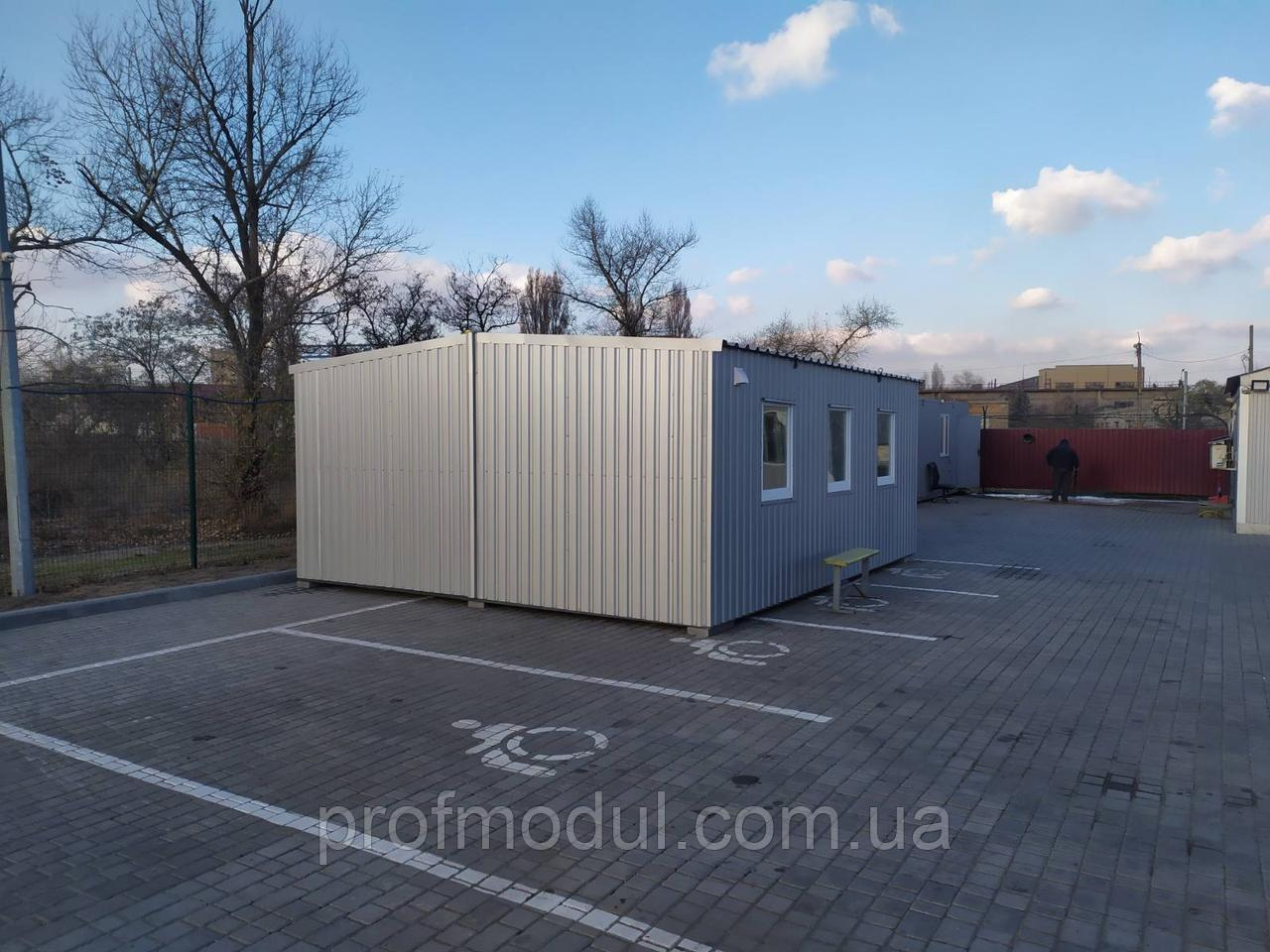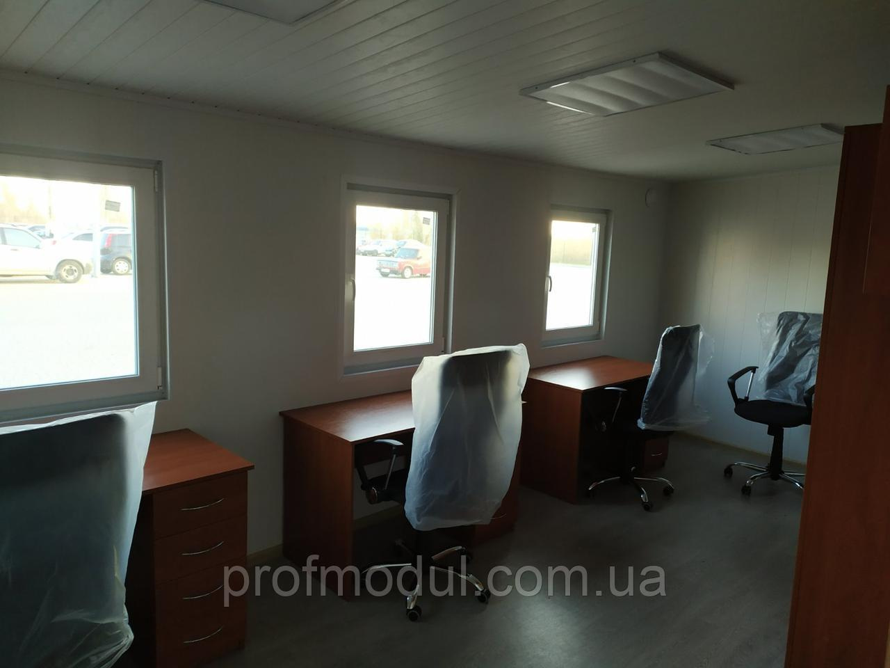 Модульные здания такого типа используются для размещения персонала на различных площадках (строительные, автомобильные, штрафплощадки, производственные), без капитального строительства, например когда оно запрещено или когда времени на строительство нет. Мобильный офис состоит из двух модулей скреплённых между собой и образует здание общей площадью 30 м/ кв. При входе в здание сразу попадаете в небольшой тамбур с которого уже можно зайти в два отдельных кабинета.