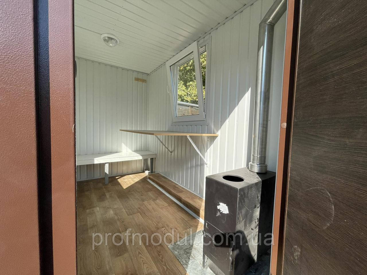 В комплектацію входить: піч типу "буржуйка" з димарем , відкидний обідній стіл, лавки, та аккумулятор 12V 65А для освітлення.