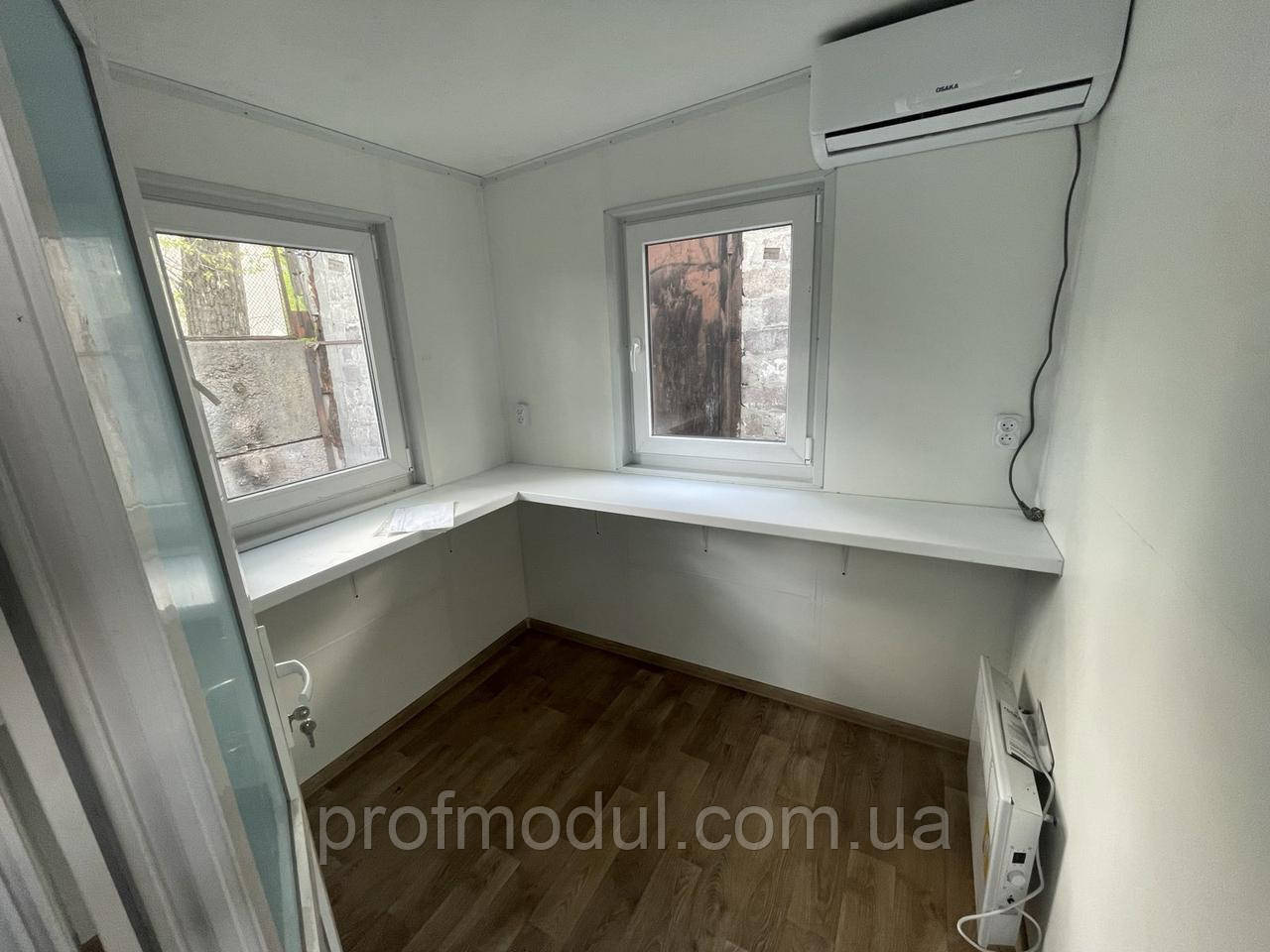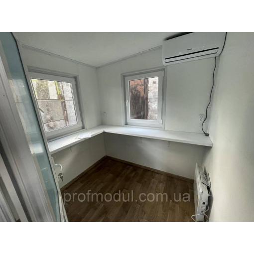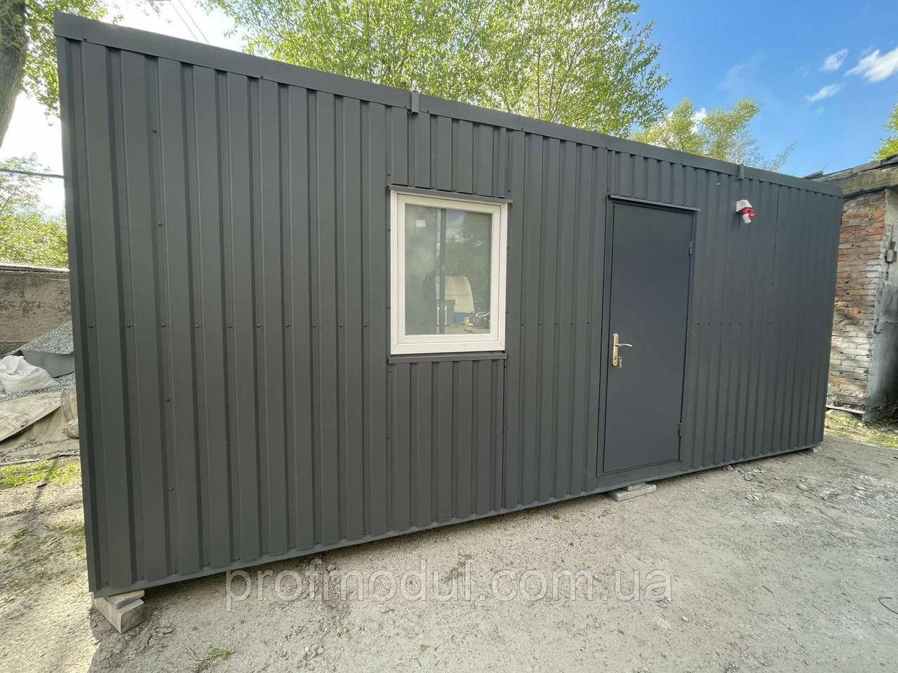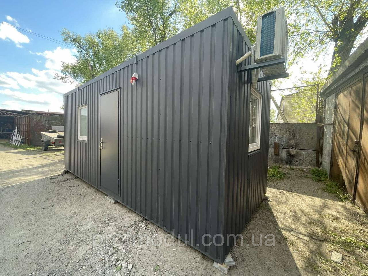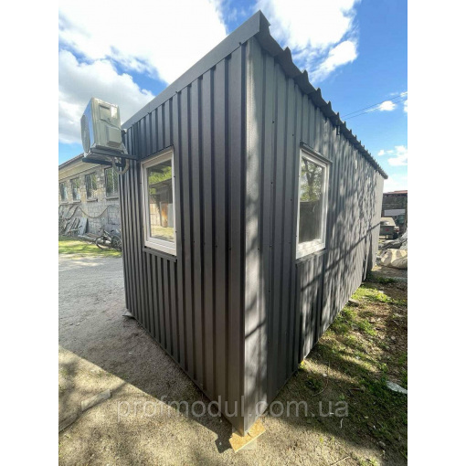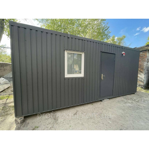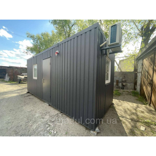 Побутівка має розмір 6*2,5м і виготовлена за кресленням замовника. Всього лиш на 14 м/кв нам вдалося розмістити і кухню 2*2 метри і душову і санвузол з двома кабінками, двома пісуарами, умивальником та бойлером.
