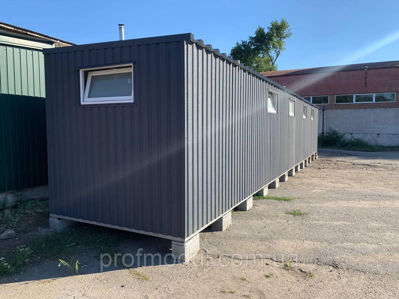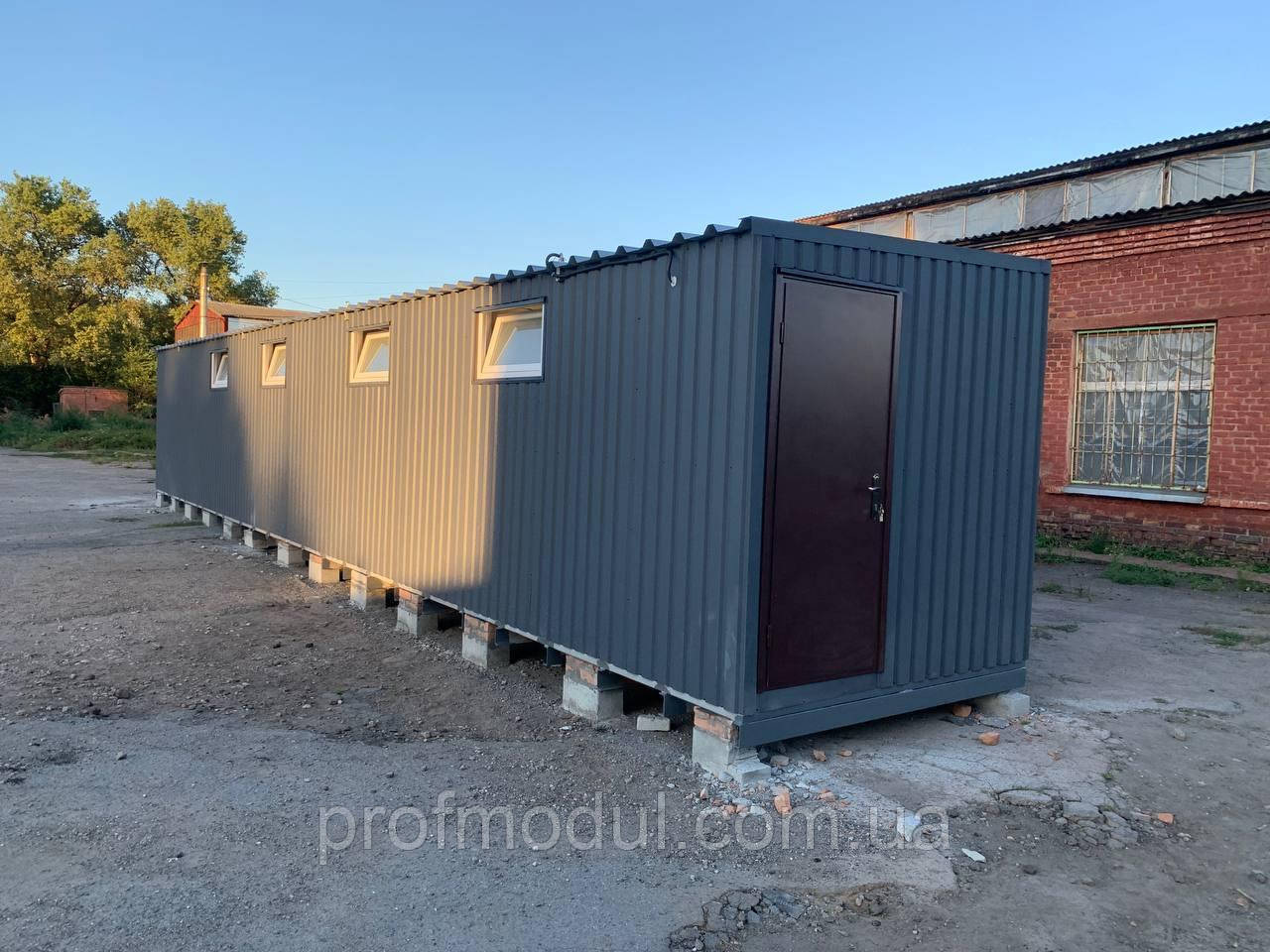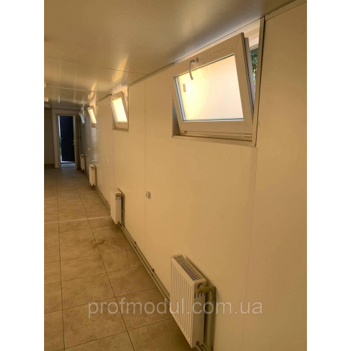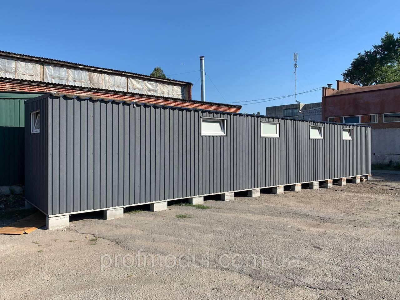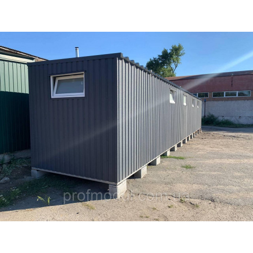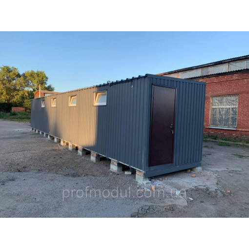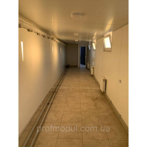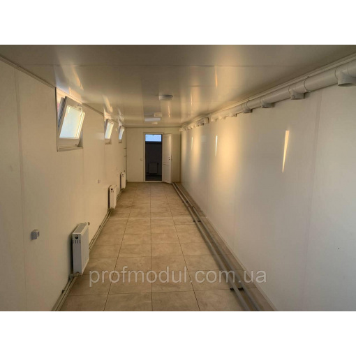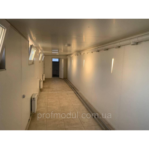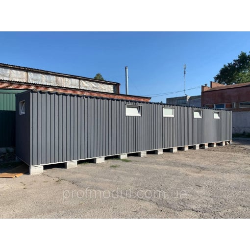 Модульна роздягальня складається з двох модулів розміром 7,5*2,4м, які об'єднані в одну суцільну споруду.