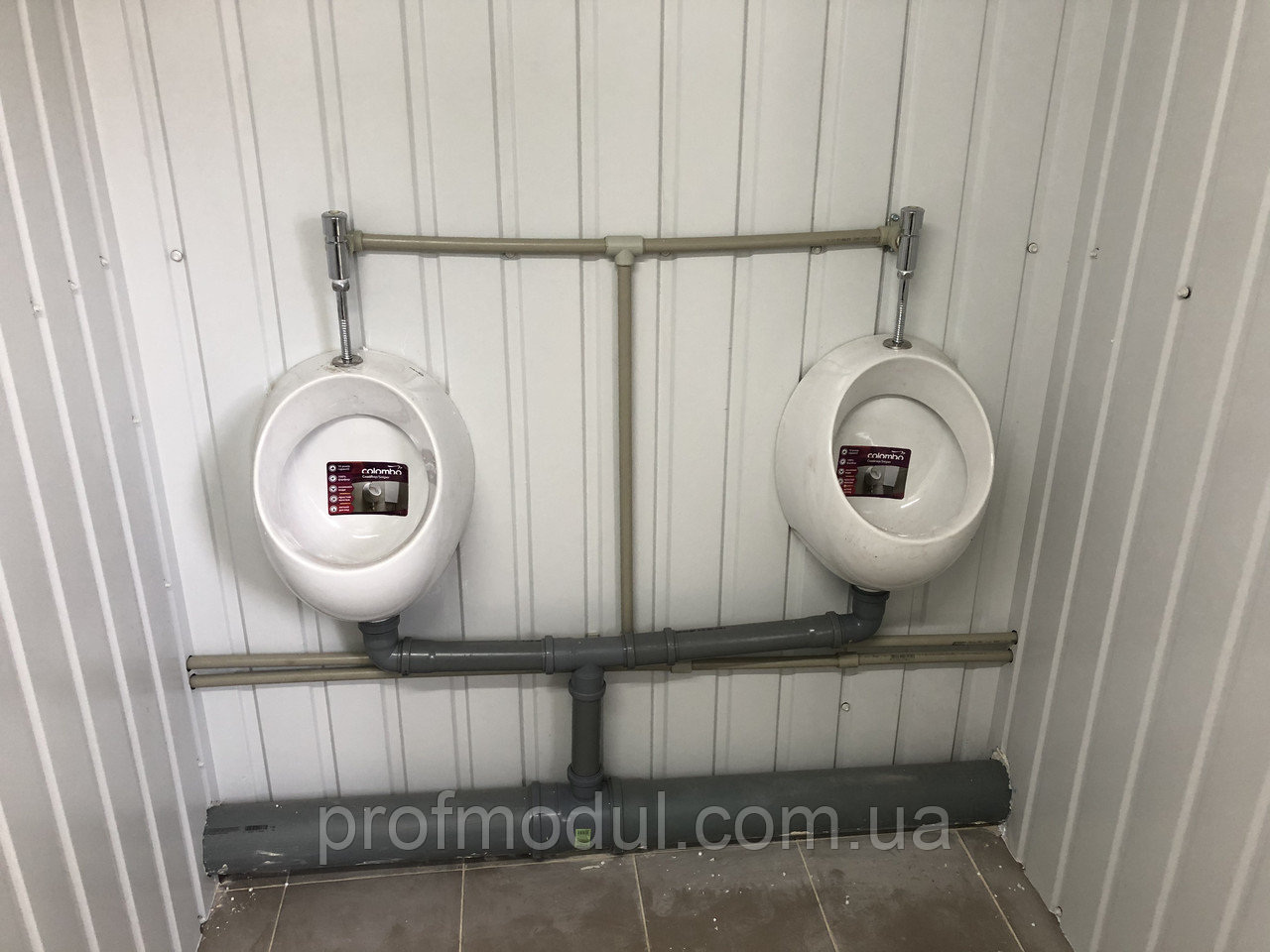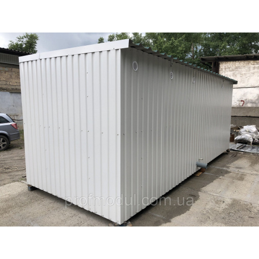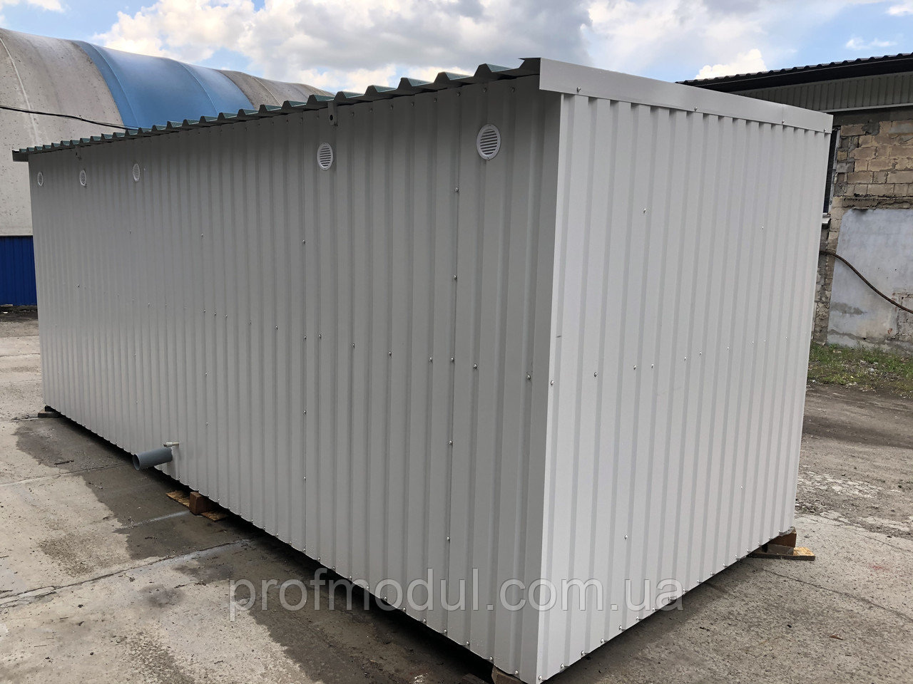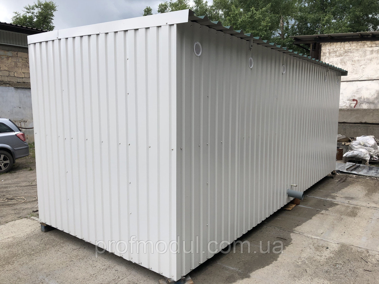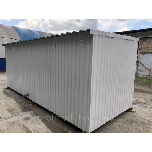 Санитарный модуль изготовлен на основании сварного каркаса из швеллера 100*50 мм. Габаритные размеры 6000*2400*2400 мм. Дно подшито оцинкованным листом 0,5 мм, утеплён 100 мм пенополистирола.По всему корпусу выполнена паро-гидроизоляция. Внешняя и внутренняя отделки -оцинкованный профлист ПС8 0,45 мм. с полимерным покрытием белого цвета. На полу смонтированы плита OSB,плита ЦСП и керамическая плитка. Входные двери: металлопластиковые 900*2000мм, Двери в санузлы: МДФ влагозащищённые 700*2000мм. В модуле предусмотрена комнатка для консьержа с металлопластиковой дверью и окном для оплаты.В комнатке установлен общий бойлер на 50л и эл. конвектор на 1 кВт. В кабинках установлены чаши Генуя , вытяжной вентилятор и влагонепроницаемые LED лампы. Мужская комната оснащена двумя писсуарами и соответствующей коммуникацией. Так же и в женской и в мужской комнатах установлены умывальники, сушилки для рук, эл. конвектор на 1 кВт. Модульные санузлы широко используются там, где нет надобности или возможности строить стационарные здания, но есть необходимость создать нормальные гигиенические условия. Это: строительные площадки, вахтовые городки, места организации различных мероприятий на открытом воздухе, туристические базы, летние кафе и придорожные гостиницы, модульные комплексы. Подробнее: https://profmodul.com.ua/ Заказать себе: