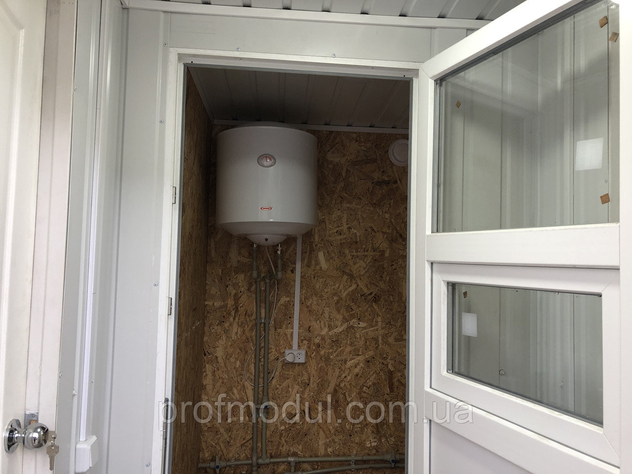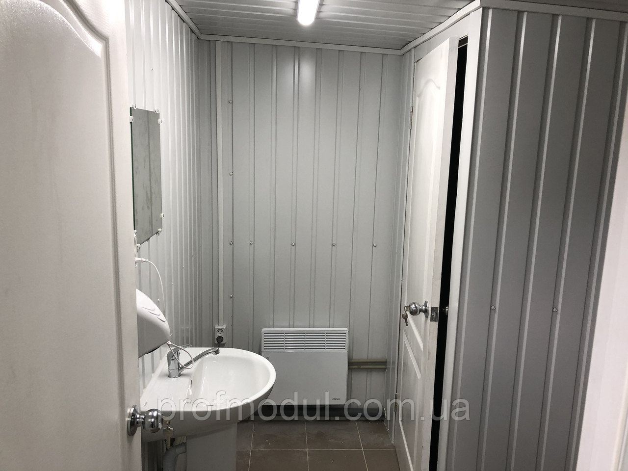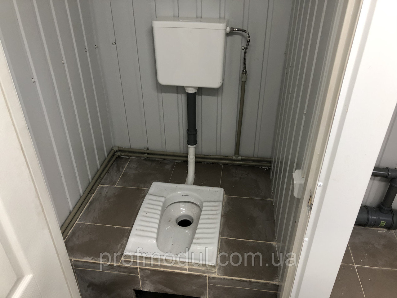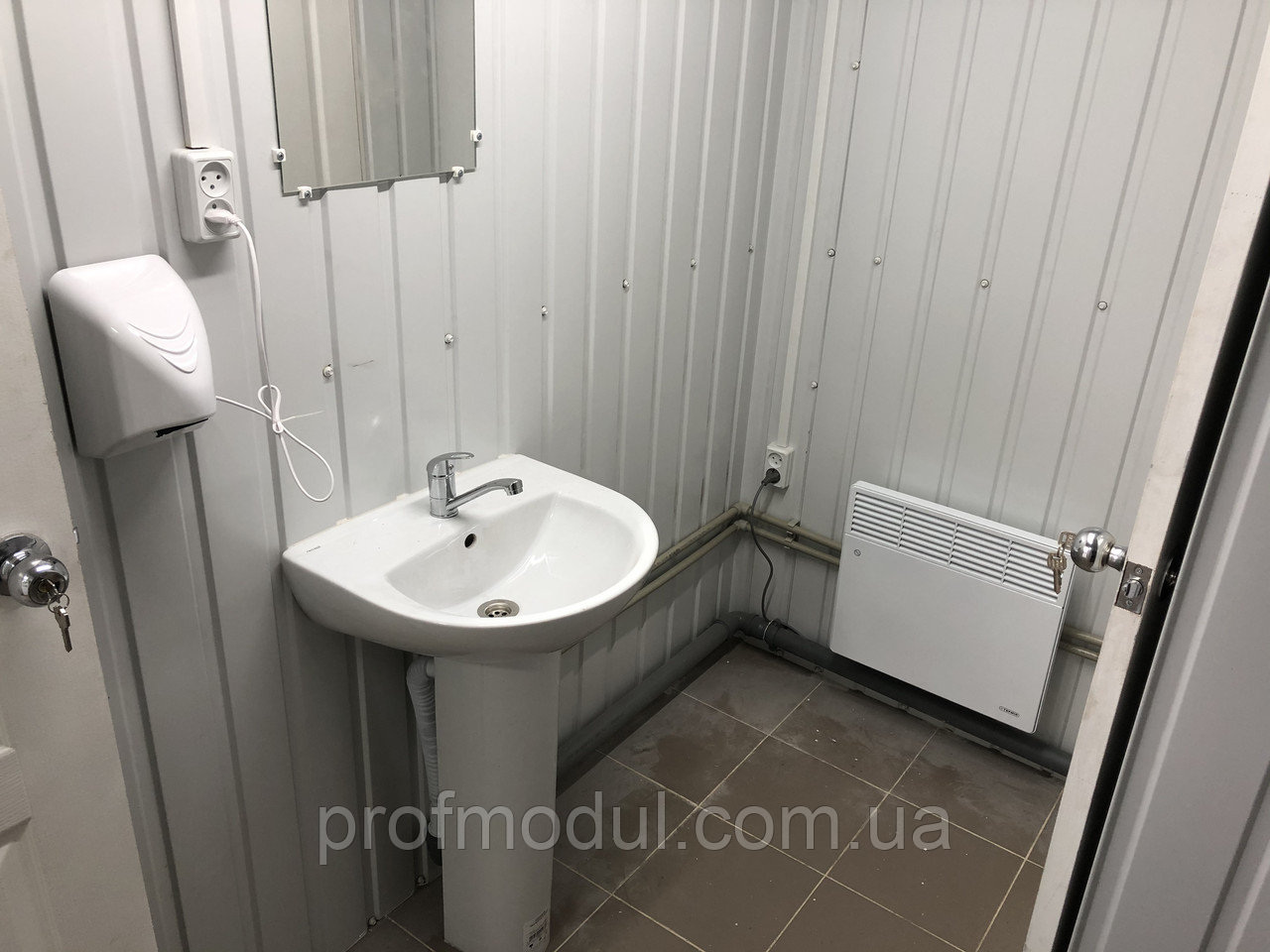Санитарный модуль изготовлен на основании сварного каркаса из швеллера 100*50 мм. Габаритные размеры 6000*2400*2400 мм. Дно подшито оцинкованным листом 0,5 мм, утеплён 100 мм пенополистирола.По всему корпусу выполнена паро-гидроизоляция. Внешняя и внутренняя отделки -оцинкованный профлист ПС8 0,45 мм. с полимерным покрытием белого цвета. На полу смонтированы плита OSB,плита ЦСП и керамическая плитка. Входные двери: металлопластиковые 900*2000мм, Двери в санузлы: МДФ влагозащищённые 700*2000мм. В модуле предусмотрена комнатка для консьержа с металлопластиковой дверью и окном для оплаты.В комнатке установлен общий бойлер на 50л и эл. конвектор на 1 кВт. В кабинках установлены чаши Генуя , вытяжной вентилятор и влагонепроницаемые LED лампы. Мужская комната оснащена двумя писсуарами и соответствующей коммуникацией. Так же и в женской и в мужской комнатах установлены умывальники, сушилки для рук, эл. конвектор на 1 кВт. Модульные санузлы широко используются там, где нет надобности или возможности строить стационарные здания, но есть необходимость создать нормальные гигиенические условия. Это: строительные площадки, вахтовые городки, места организации различных мероприятий на открытом воздухе, туристические базы, летние кафе и придорожные гостиницы, модульные комплексы. Подробнее: https://profmodul.com.ua/ Заказать себе: